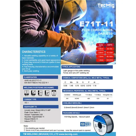 Cables con núcleo fundente sin gas TecMig E71T-11: ideales para trabajos de bricolaje y soldadura en exteriores